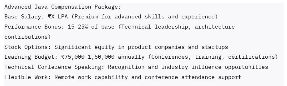 Whether you choose solution architecture leadership, performance engineering specialization, cloud-native platform development, or technical product management, advanced Java skills provide a foundation for the highest levels of technical leadership and compensation in software development.